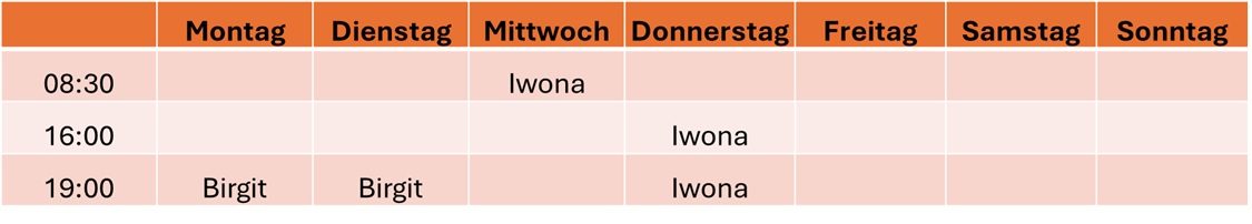 Bei Interesse zur Teilnahme bitten wir um direkte Kontaktaufnahme mit Iwona oder Birgit.